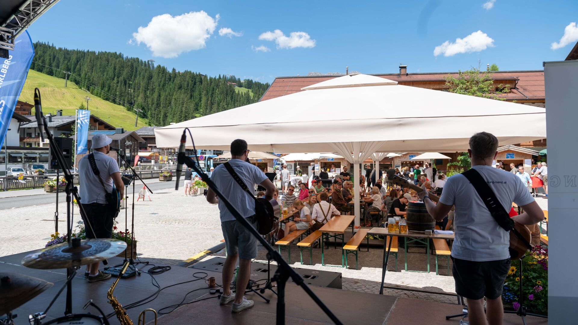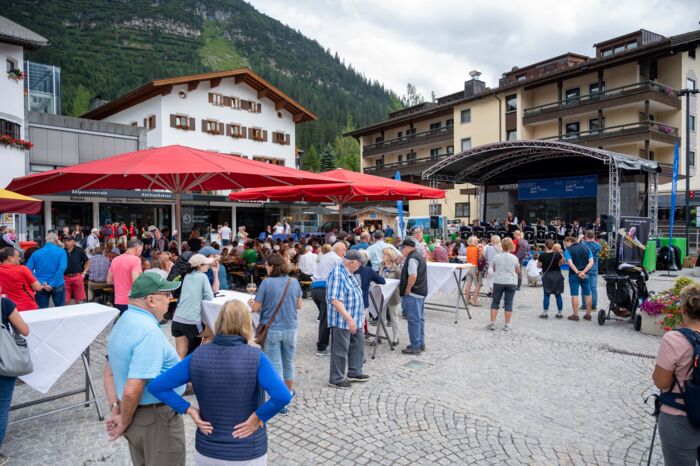 11:00 - 11:30 Uhr Eröffnung mit den Alphornbläsern der Trachtenkapelle Lech, 5er Alphorngspann und Wäldar Tonzmusig