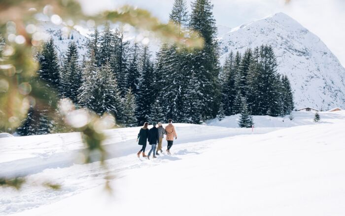 From Älpele Inn the winter hiking trail starts to the Tannlägeralpe. Here, almost at the end of the valley, the path describes a loop and leads you out of the valley again. After you have made a few metres on the path you have already taken, the path branches off to the right at the level of the old hunting lodge. The path leads slightly uphill through the forest to the Zuger saw. Here you cross the Lech over a bridge and return to the winter hiking trail which now leads you back to the picturesque village of Zug.